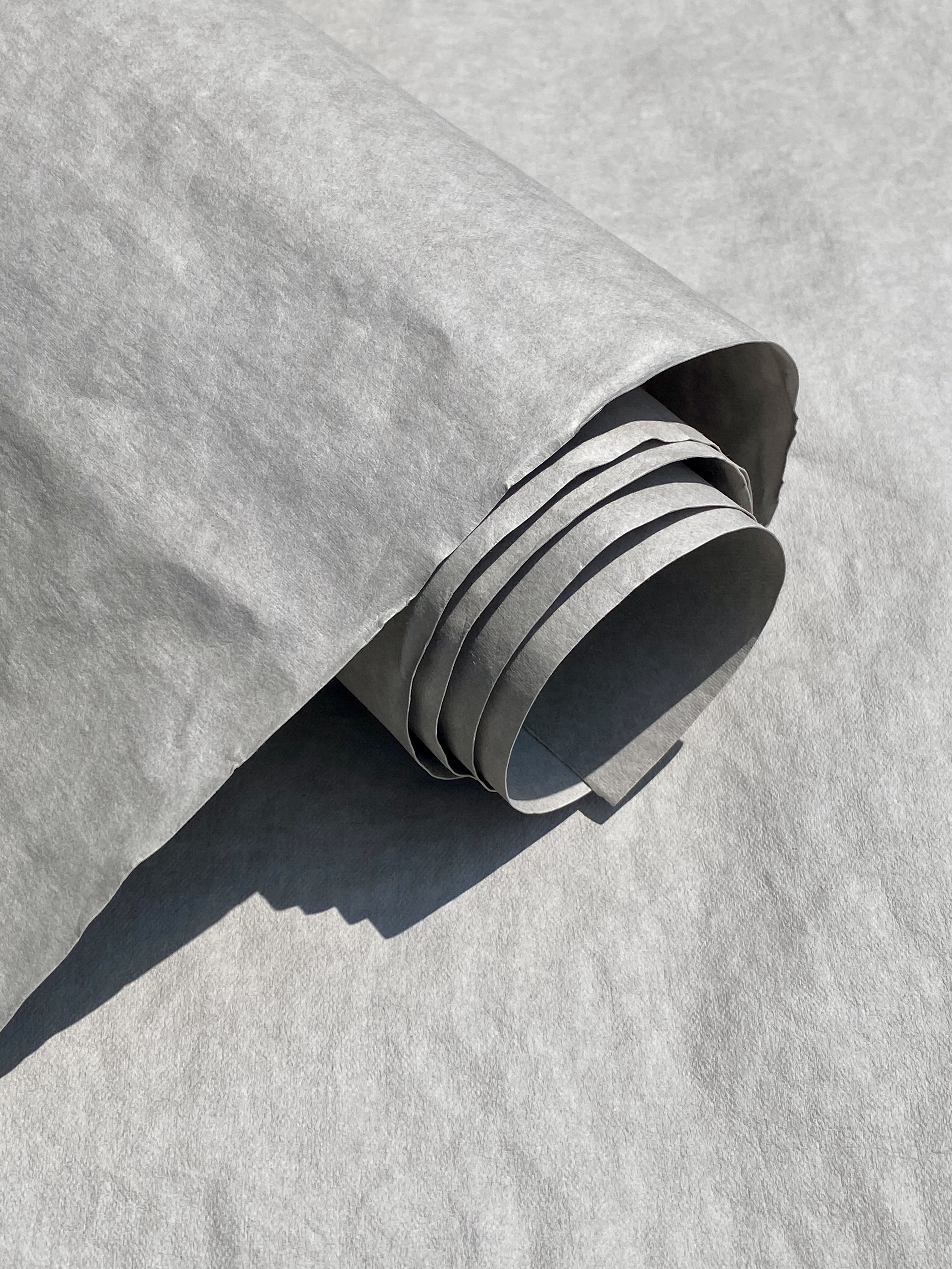 Arch s vizáží starého papíru, který byl impregnovaný latexem a dalšími procesy, takže ho můžete umýt a znovu použít. Barva šedá na lícové i rubové straně.